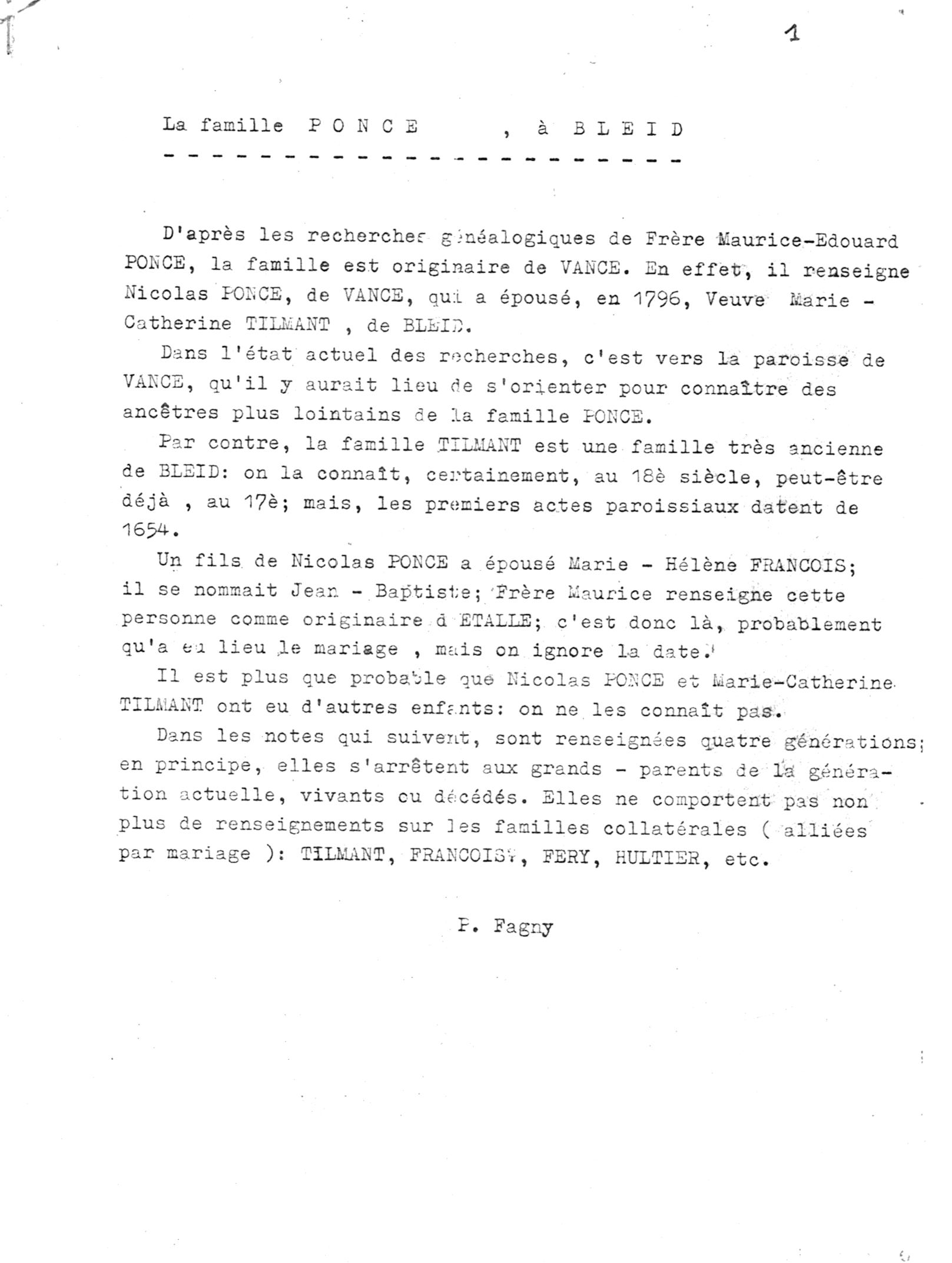 L'abbé P. Fagny, ancien curé de Bleid, avait rédigé, en son temps, un