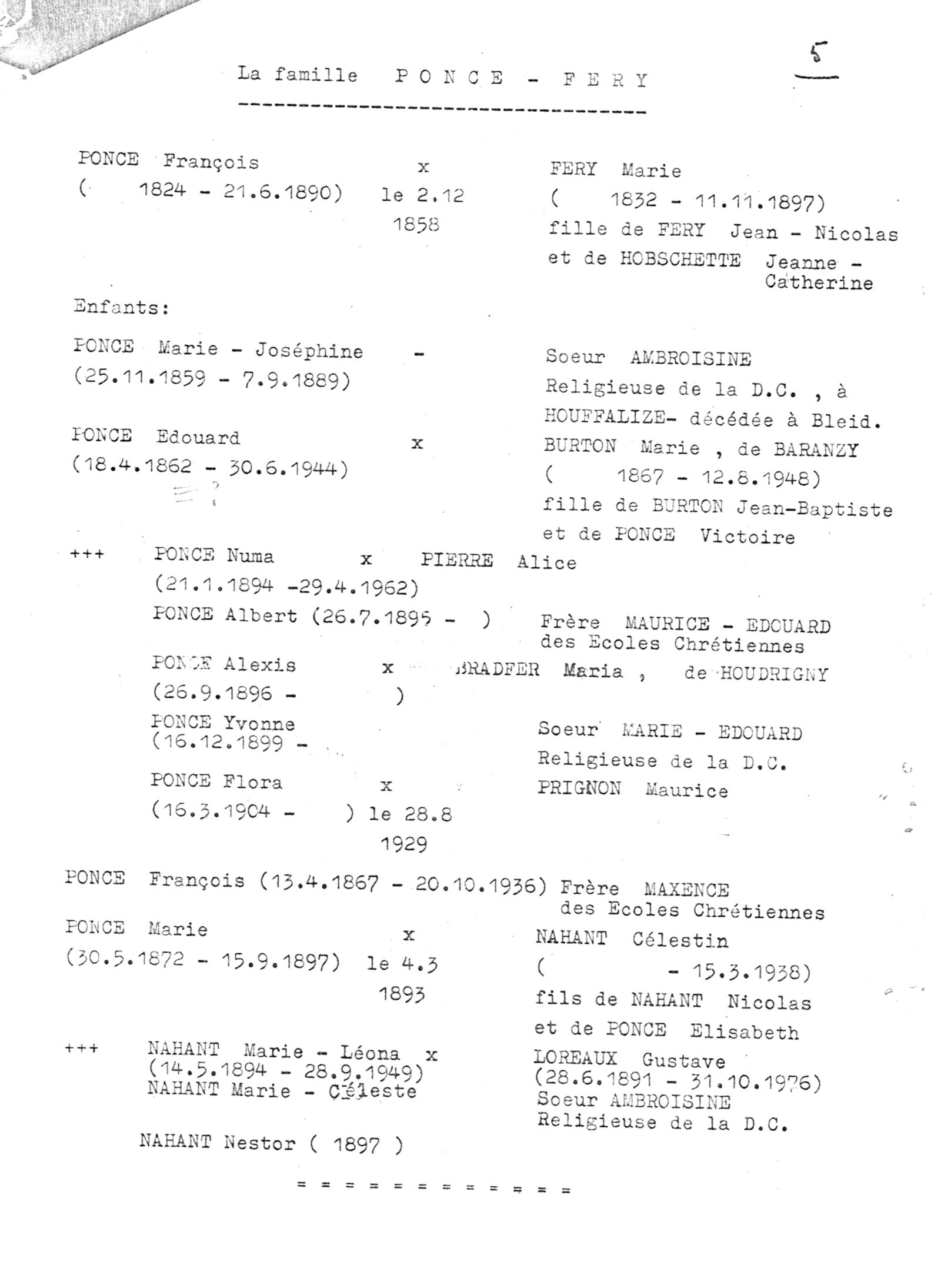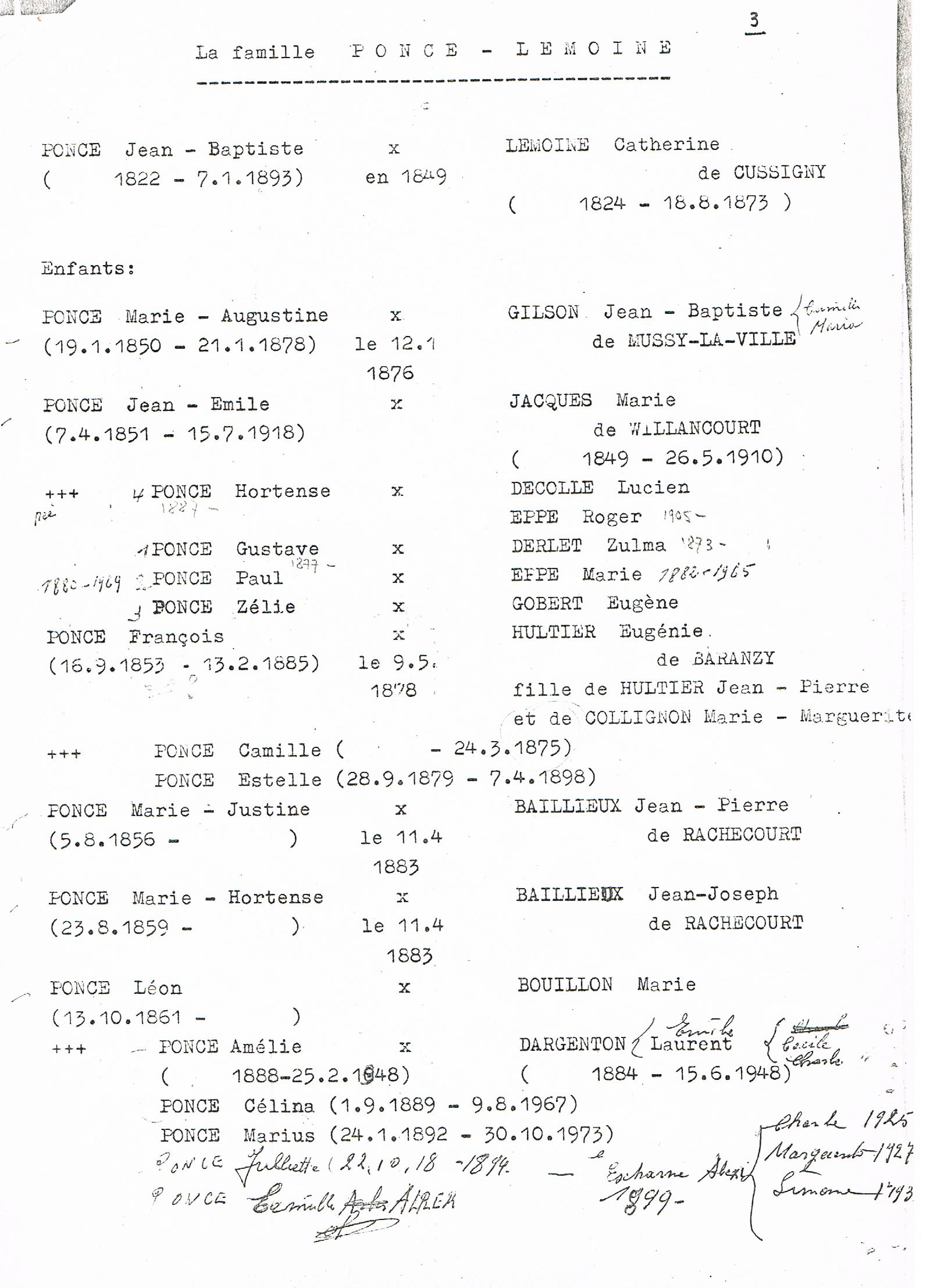 Tableau à partir de l'ancêtre, Jean-Nicolas Poncé : P191